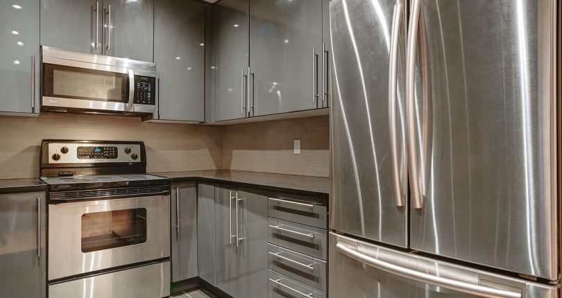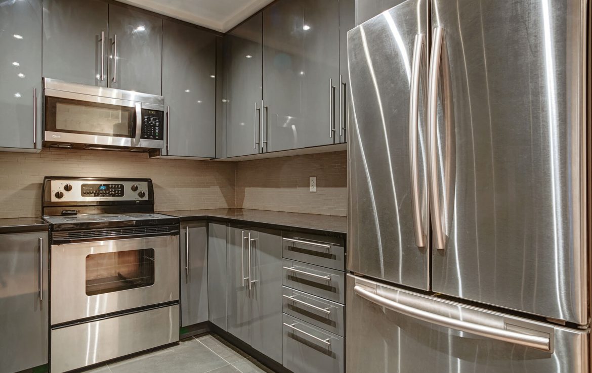 Kitchen equipped with stove, fridge, dishwasher, washer, and dryer